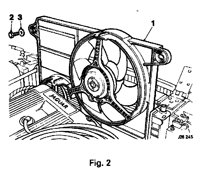 - Secure the fan cowl assembly (1 Fig. 2) into position with the two screws and washers already removed (2,3 Fig. 2).