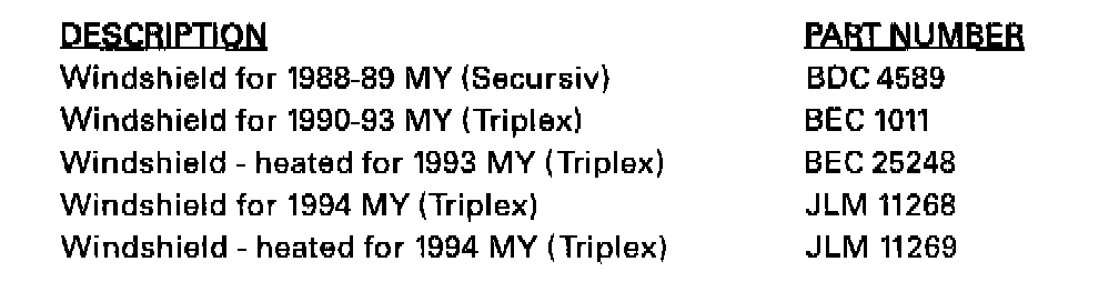 Observe the information below when replacing windshields. Dealers should ensure that their glass replacement sublet shops are aware of this information.