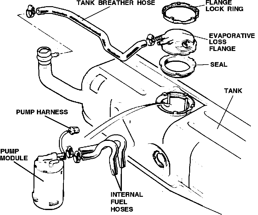 To remove fuel pump module, it is necessary to remove fuel tank.Fuel Tank And Pump Module: