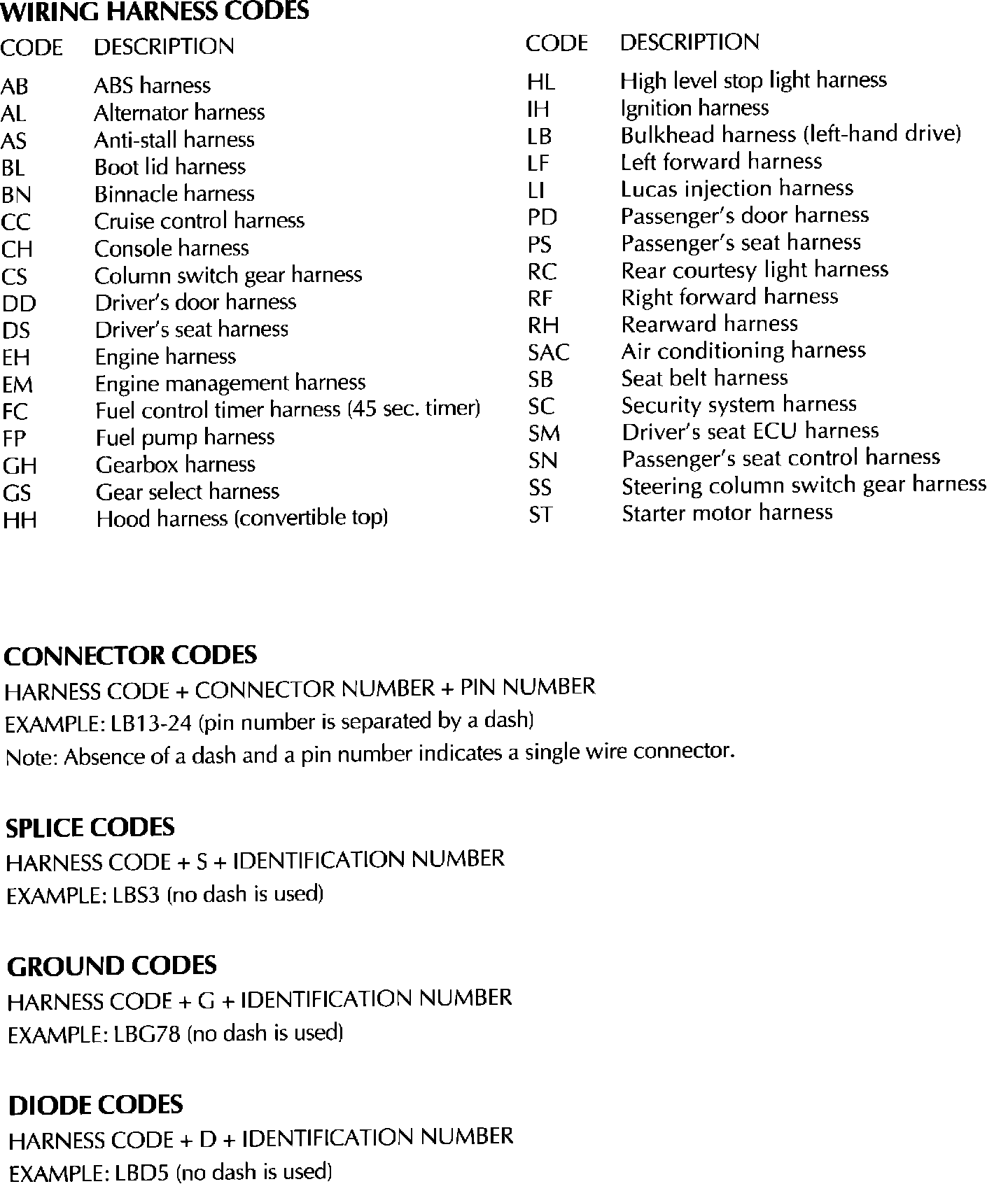 Key To Symbols & Codes: