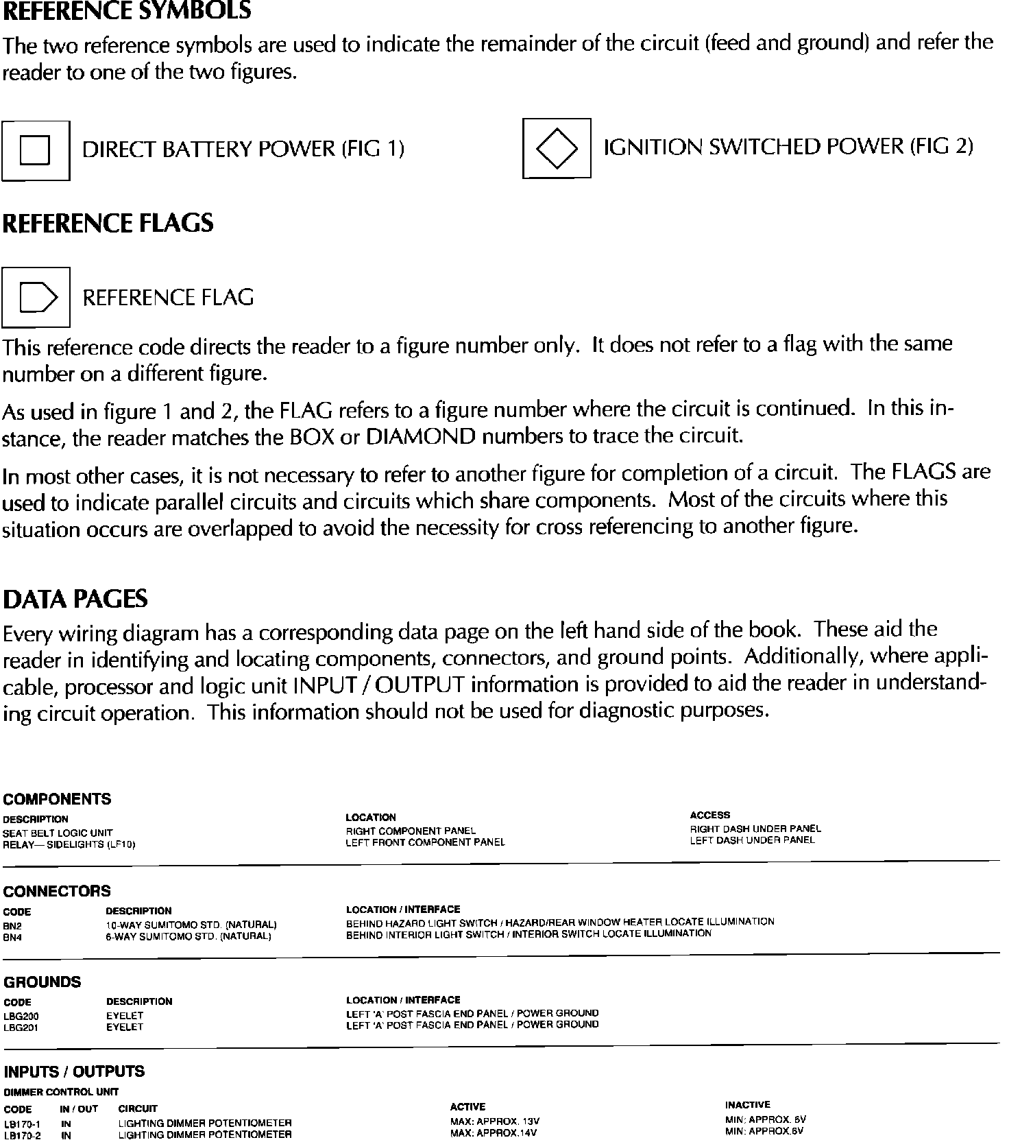 Key To Symbols & Data Pages: