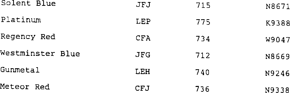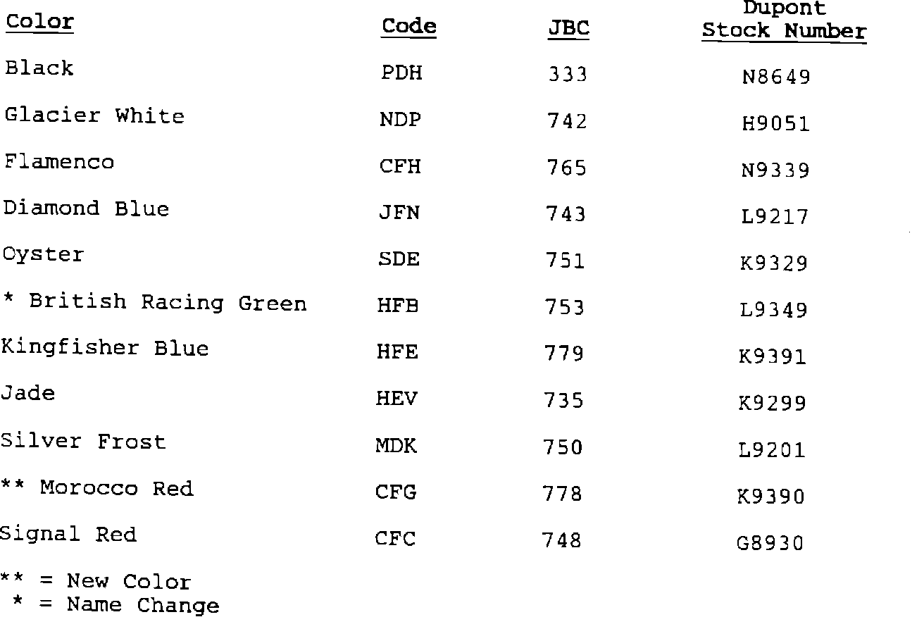 Special Order Paints for 1993 Model Year vehicles.