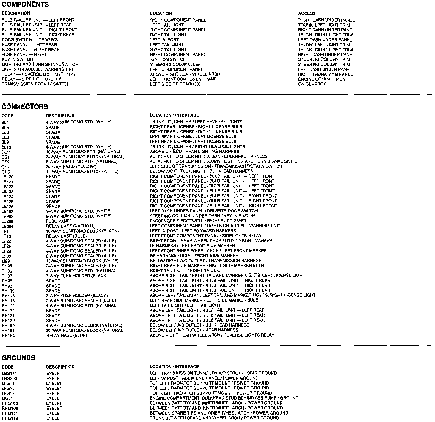 Components, Connectors, Grounds: