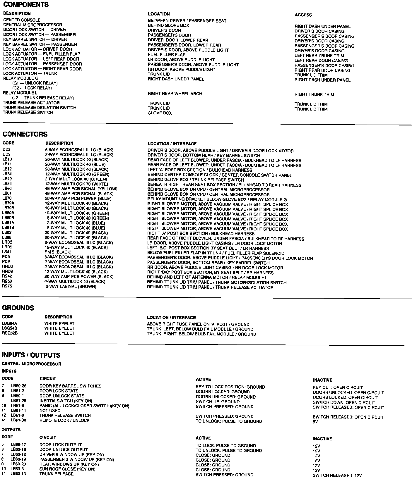 Components, connectors, grounds, inputs/outputs