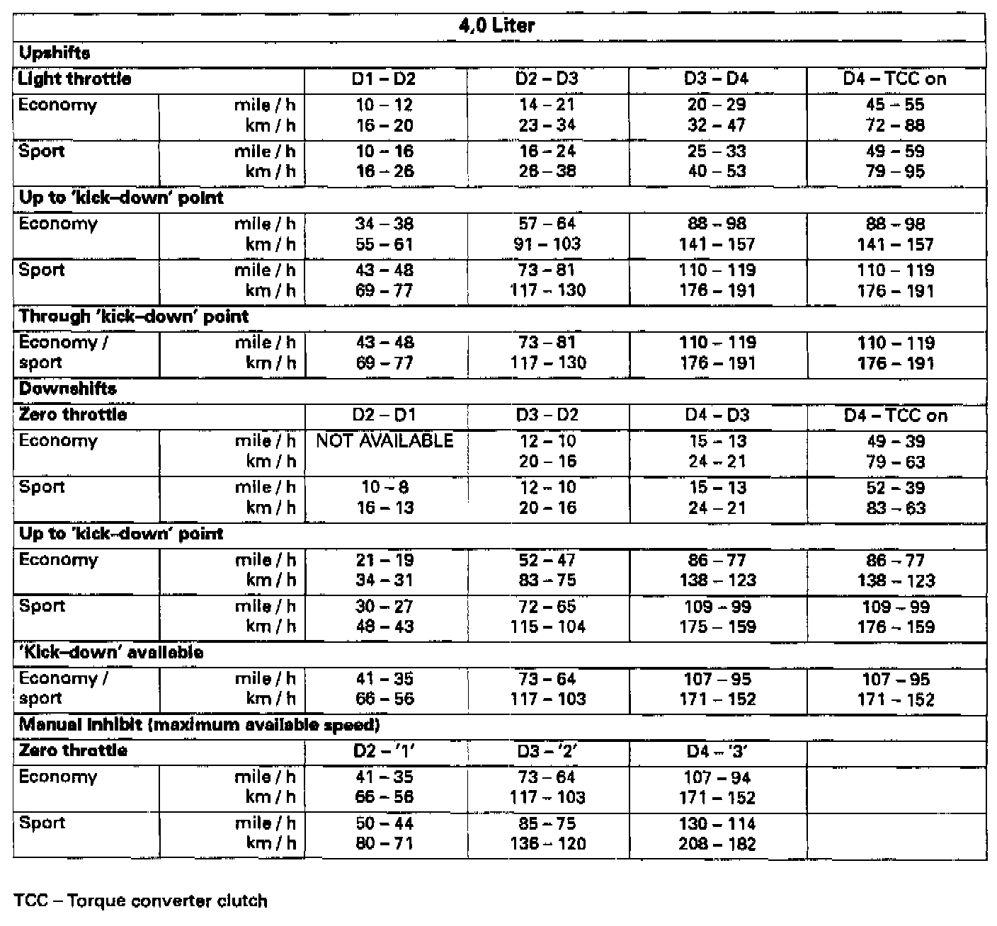 Shift Points for 1994-1997 vehicles with AJ16 4,0L Engine