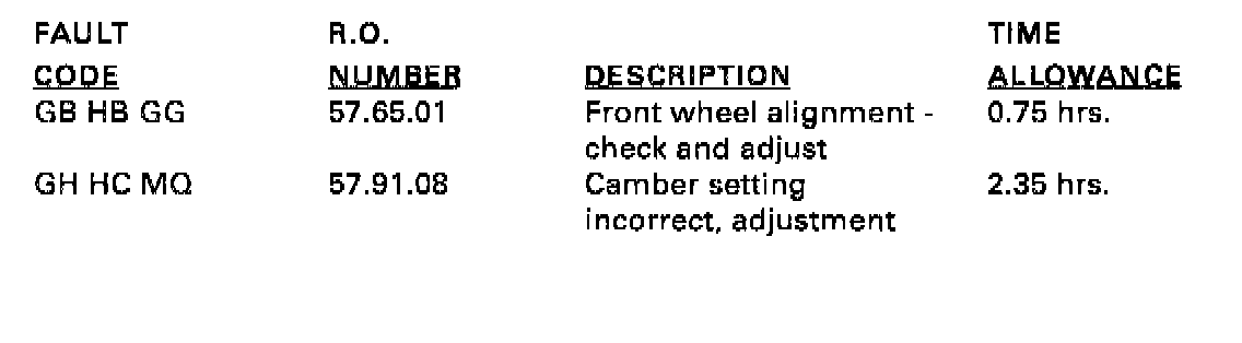 Wheel alignments may not be performed under warranty without a customer complaint. "Before" and "after" settings must be recorded and kept with the repair order in the vehicle file.