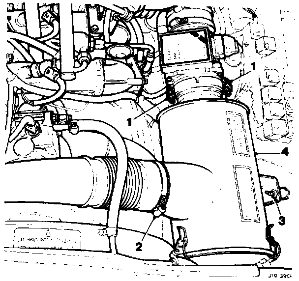 - Displace and remove the air box assembly (4).