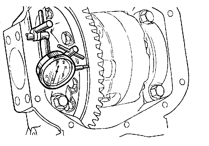 Mount a dial indicator on the gear carrier housing with the button against the back face of the gear (Fig.1f).