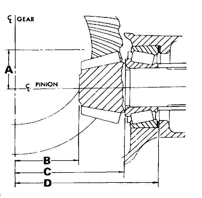 When correctly adjusted, a pinion marked Zero will be at the zero cone setting distance dimension; which is 66.67 mm (2.625 in.) (i.e. from the centre line of the gear to the face on the small end of the pinion). A pinion marked Plus two (+2) should be adjusted to the nominal (or Zero) cone setting plus 0.0508 mm (0.002 in.), and a pinion marked Minus two (-2) should be adjusted to the cone setting distance minus 0.0508 mm (0.002 in.).