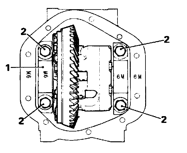 When refining the side bearing caps, ensure that the position of the numerals marked on the gear carrier housing face and side bearing cap coincide (1, Fig.2f).