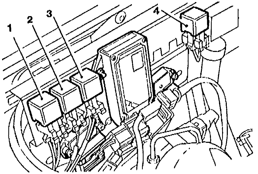 1. Open hood and remove heated oxygen sensor heater relay (3) from holder, Fig. 1.