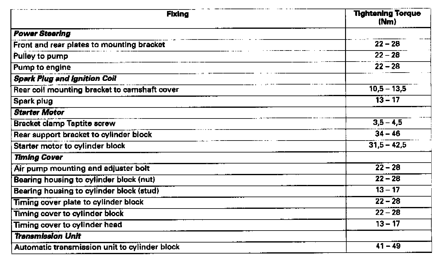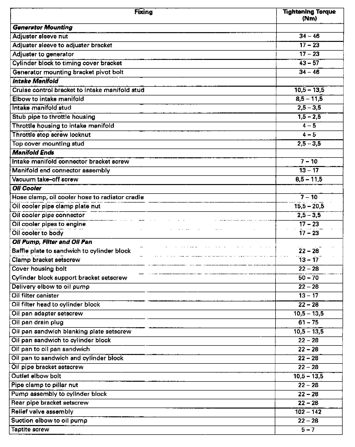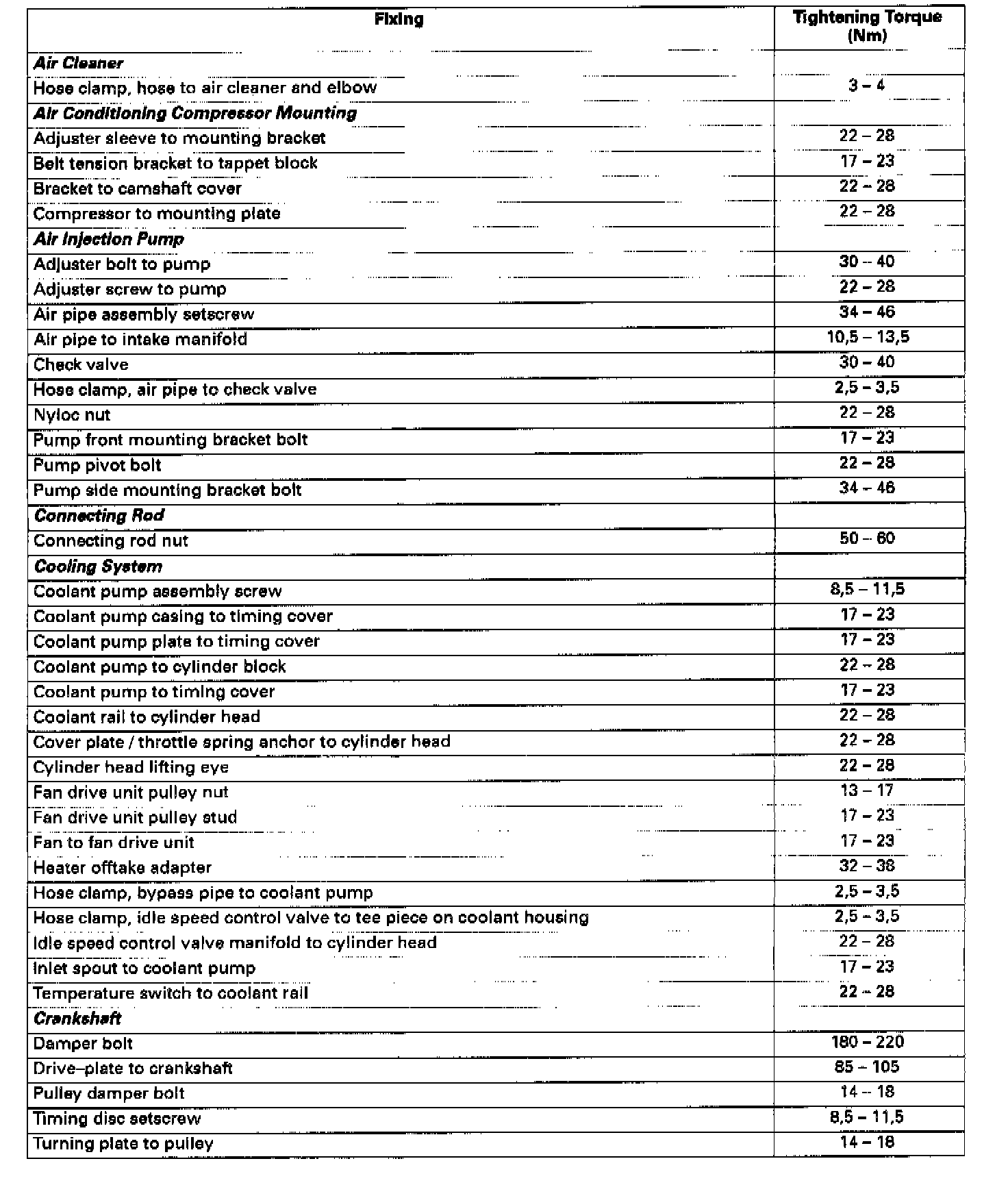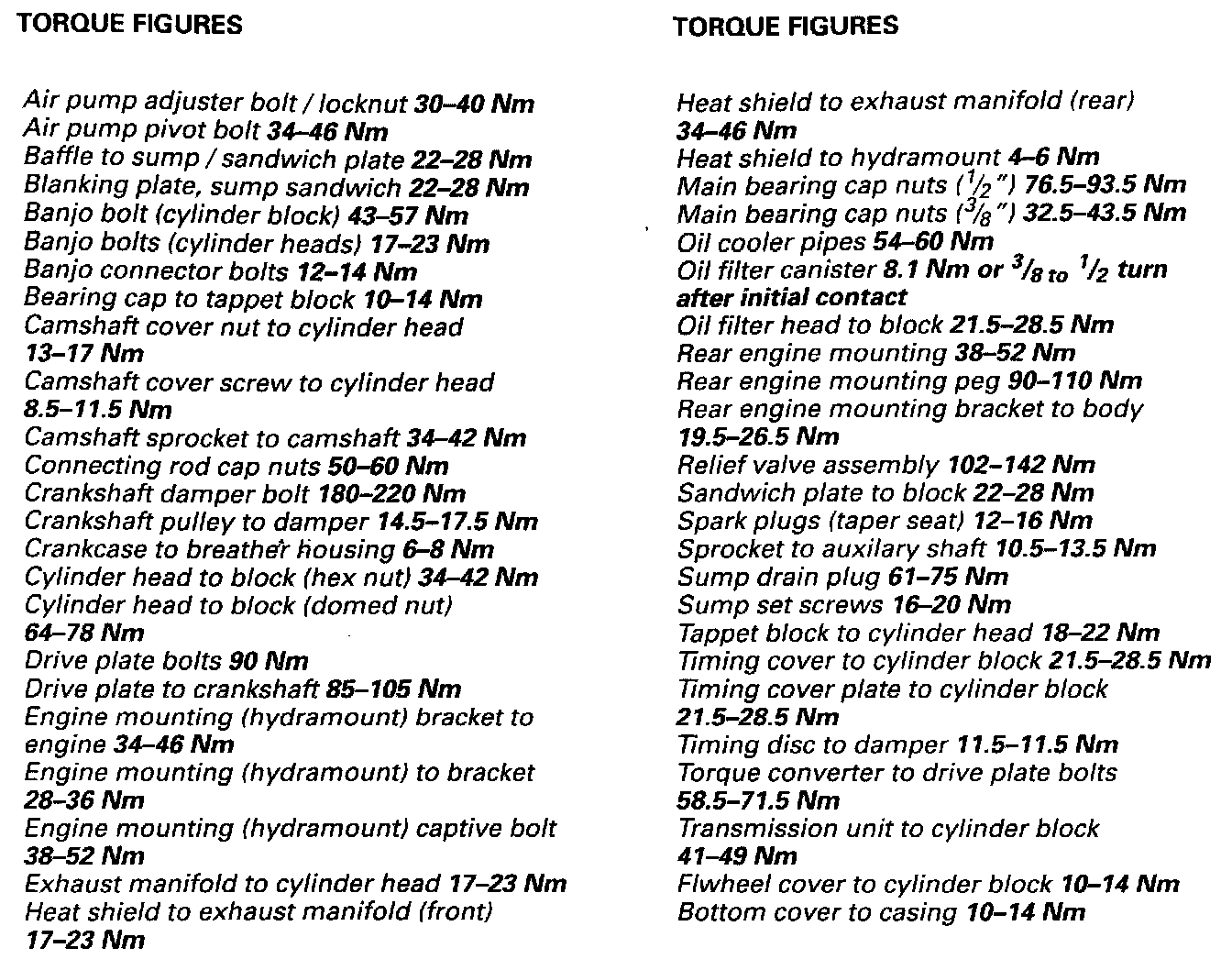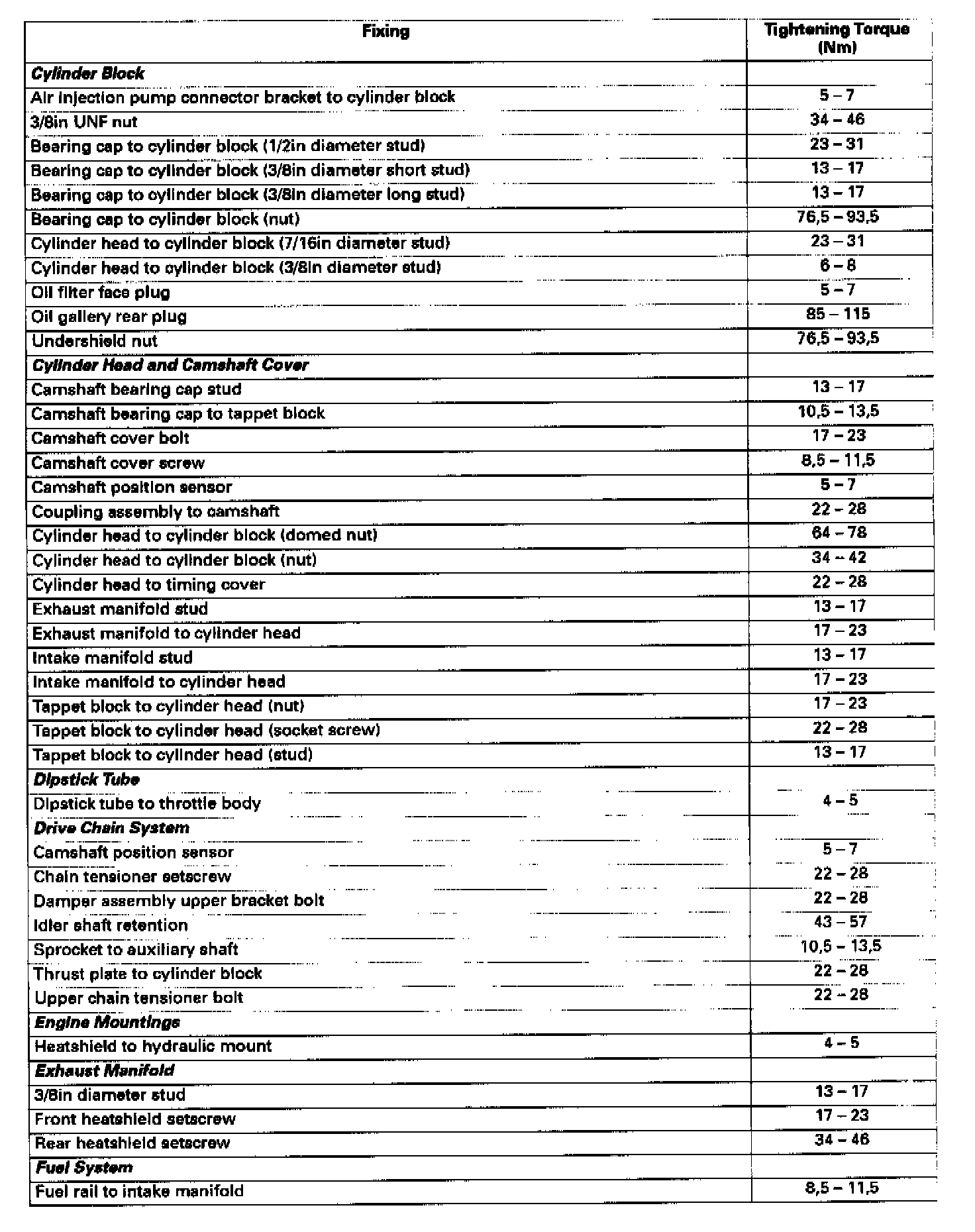 Engine Torque Specifications
