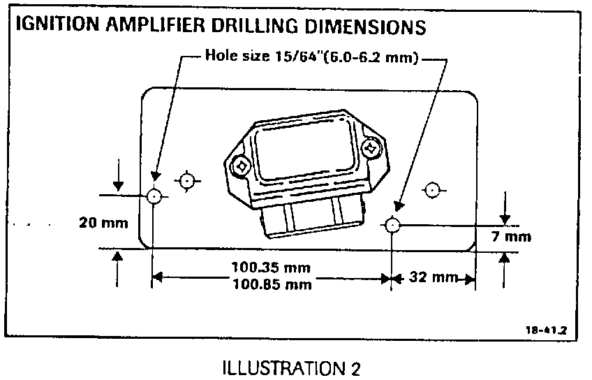 3. On the amplifier base plate, mark the position of the two new holes. Drill two 15/64" (6 mm) holes as shown in Illustration 2.