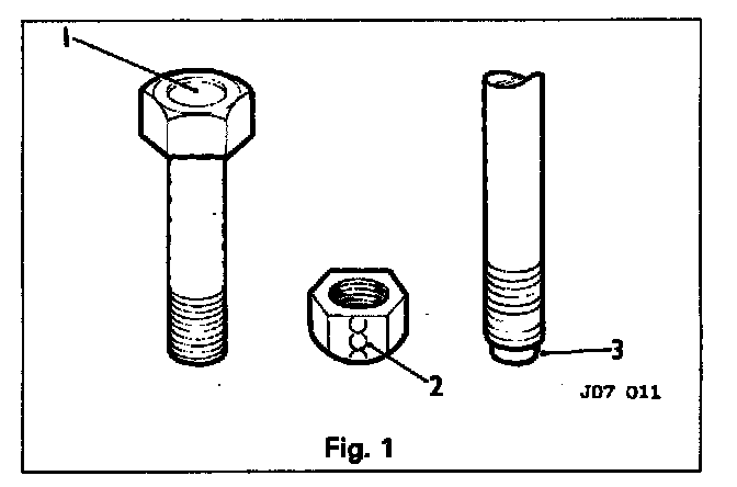 A continuous line of circles is stamped on one of the flats of the hexagon, parallel to the axis of the nut (2 Fig. 1).