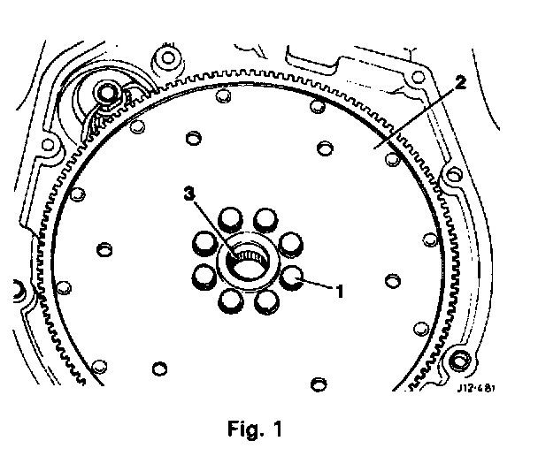 - Remove the drive-plate securing bolts (1 Fig. 1).