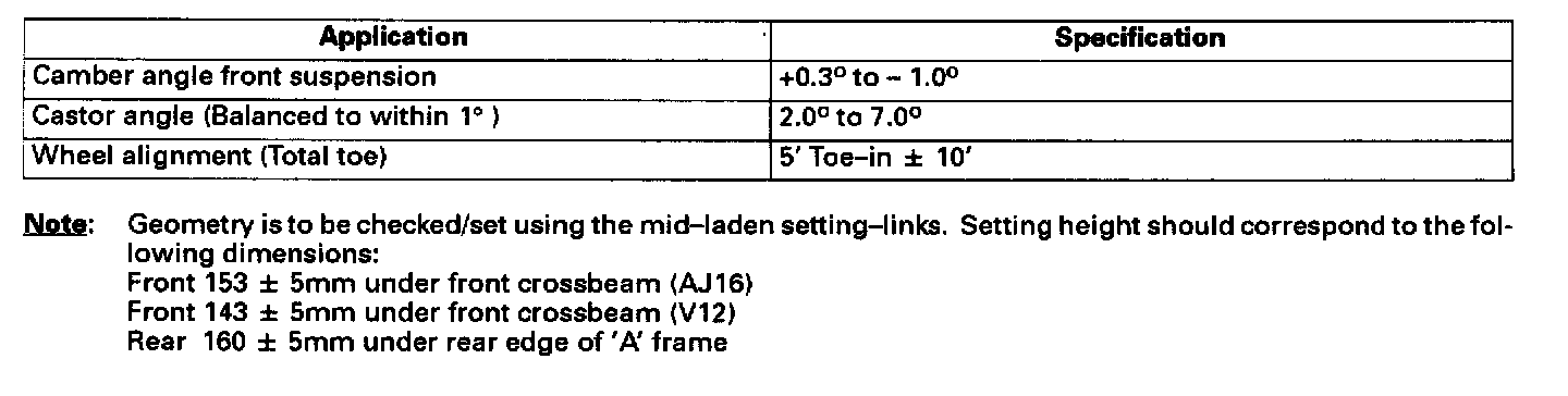 Specifications, Suspension