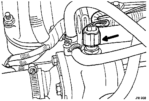 WARNING: Make sure that the engine is cold before loosening the coolant reservoir cap or working on the cooling system.Fig. 1: