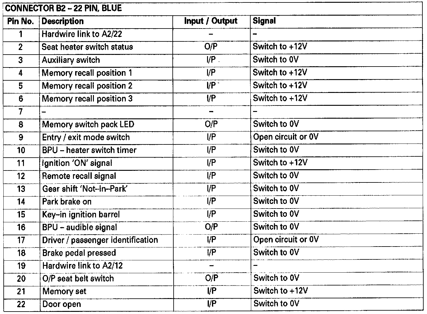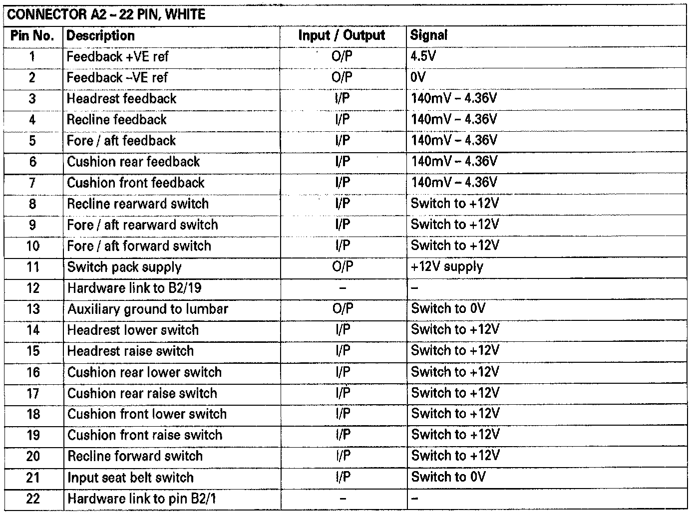 Connectors A1 and A2 form the seat internal harness interface. Connectors B1 and B2 form the cabin/seat link harness interfaceConnector Pin Description (Part 1 of 4)