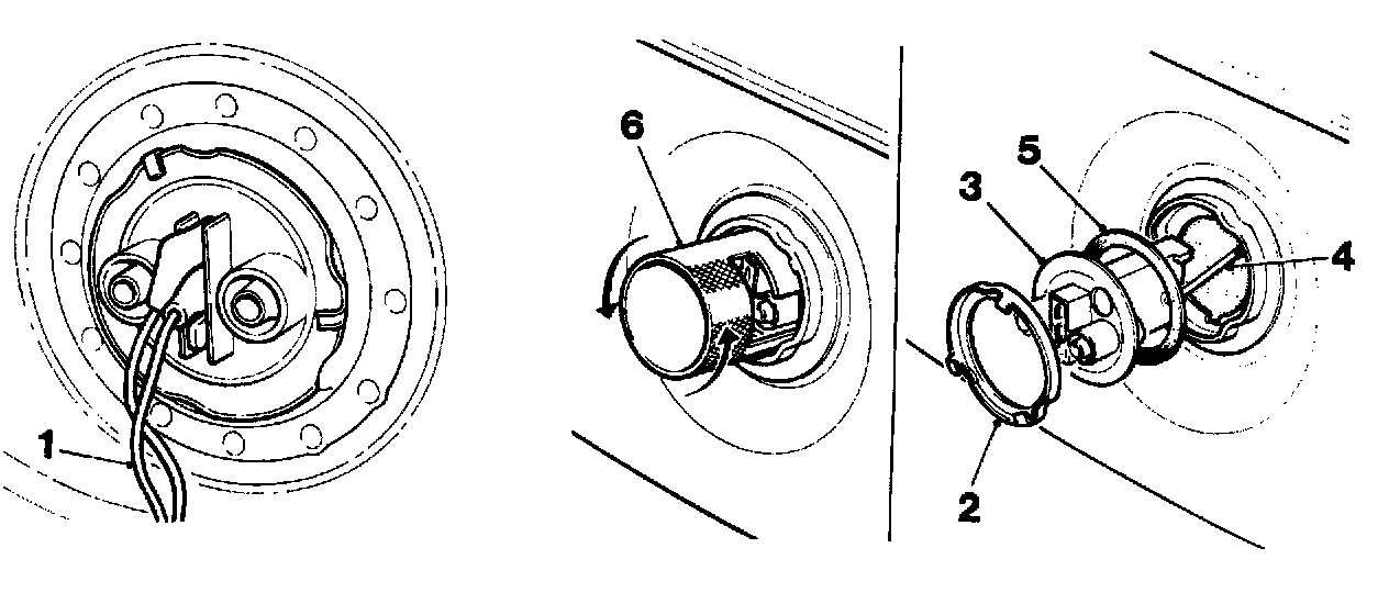 - Pull fuel gauge tank unit (3) approximately two inches out of the tank and turn 90° clockwise.