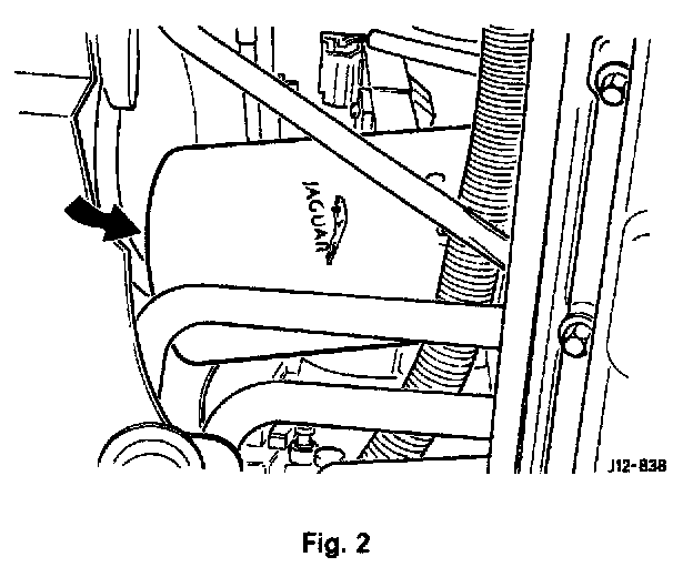 - The white oil filter cartridge displaying the Jaguar logo, is located on the left-hand side of the engine below the throttle assembly (Fig. 2).