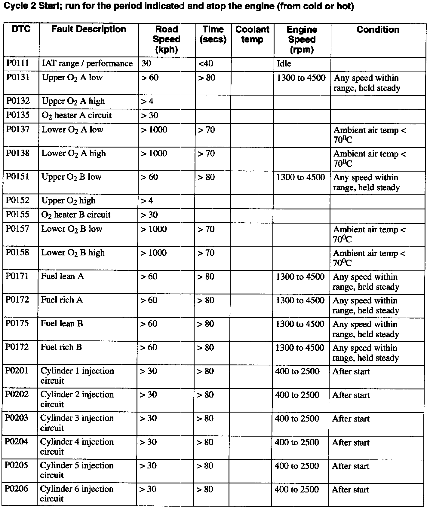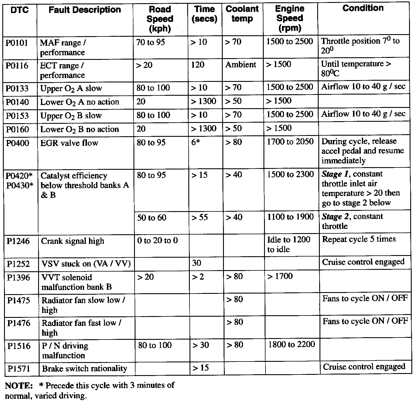6. Perform the relevant Drive Cycle as detailed in the following lists; not forgetting any unrelated road test procedure.