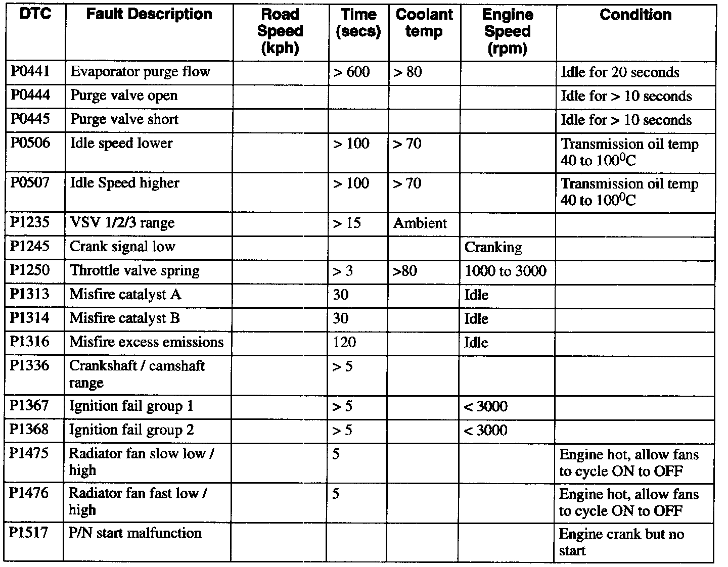 In order that DTCs may be cleared effectively and quickly, locate the appropriate code(s) listed in the tables and follow the instruction. In the case of multiple reported codes, which fall in more than one cycle, begin with the cycle(s) that require the vehicle to be driven and thus exercise the diagnostic more thoroughly.