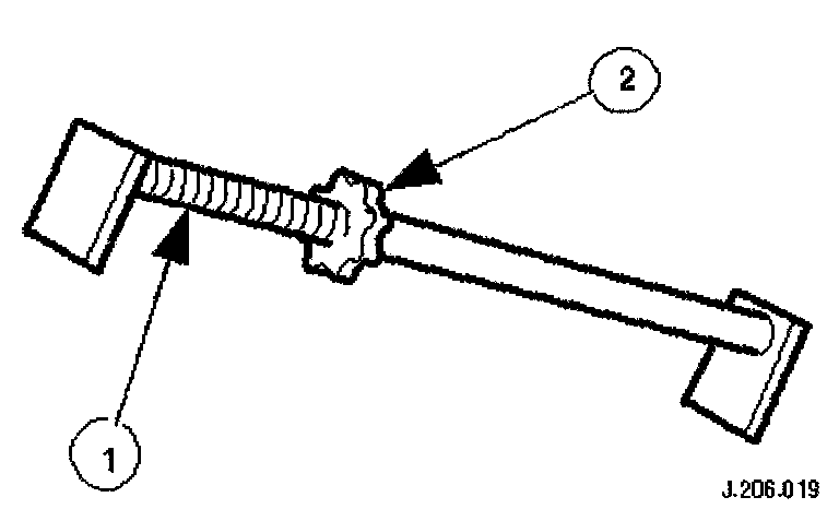 Turn the tool wheel until the brake pedal is held 60 mm down from its released position.