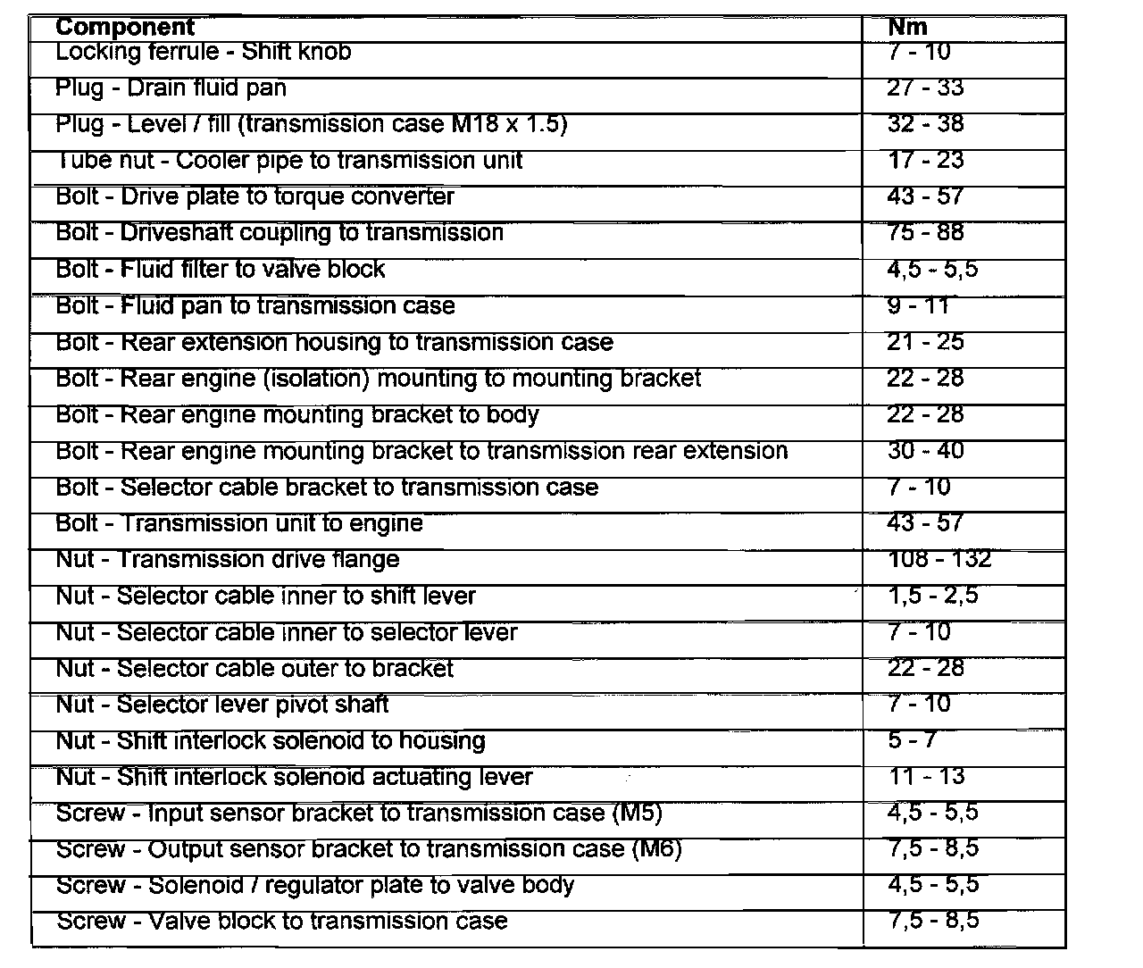 Torque Specifications