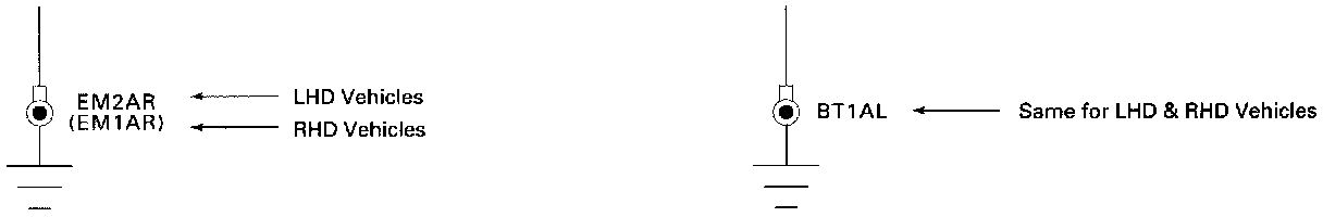 Where the ground designation differs from LHD to RHD, the RHD ground is shown in parentheses. If the ground designation is the same for LHD and RHD, only one ground designation is used.