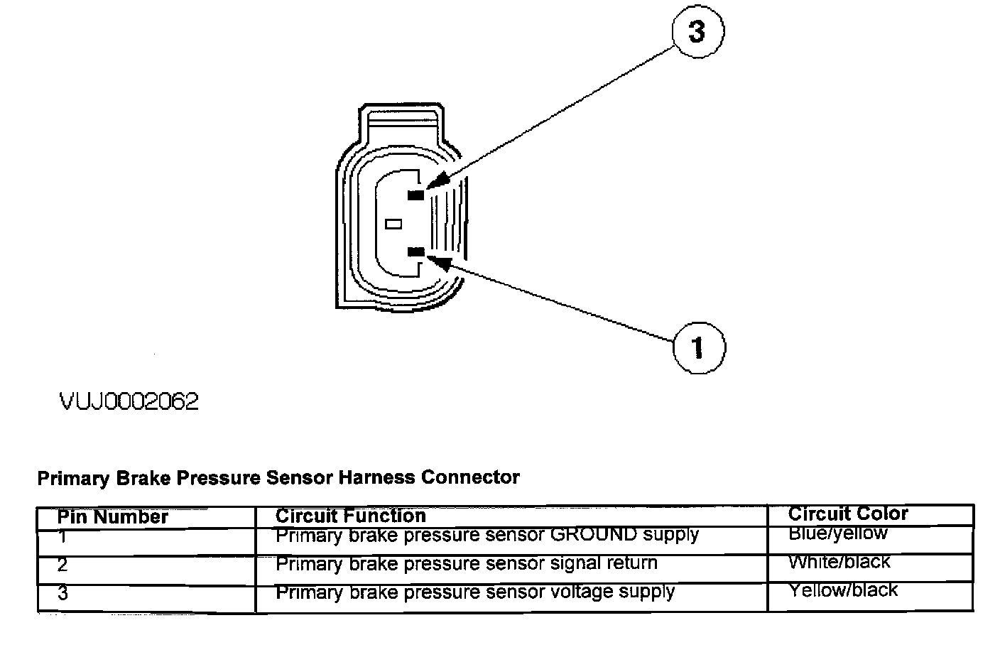 Primary Brake Pressure Sensor Harness Connector