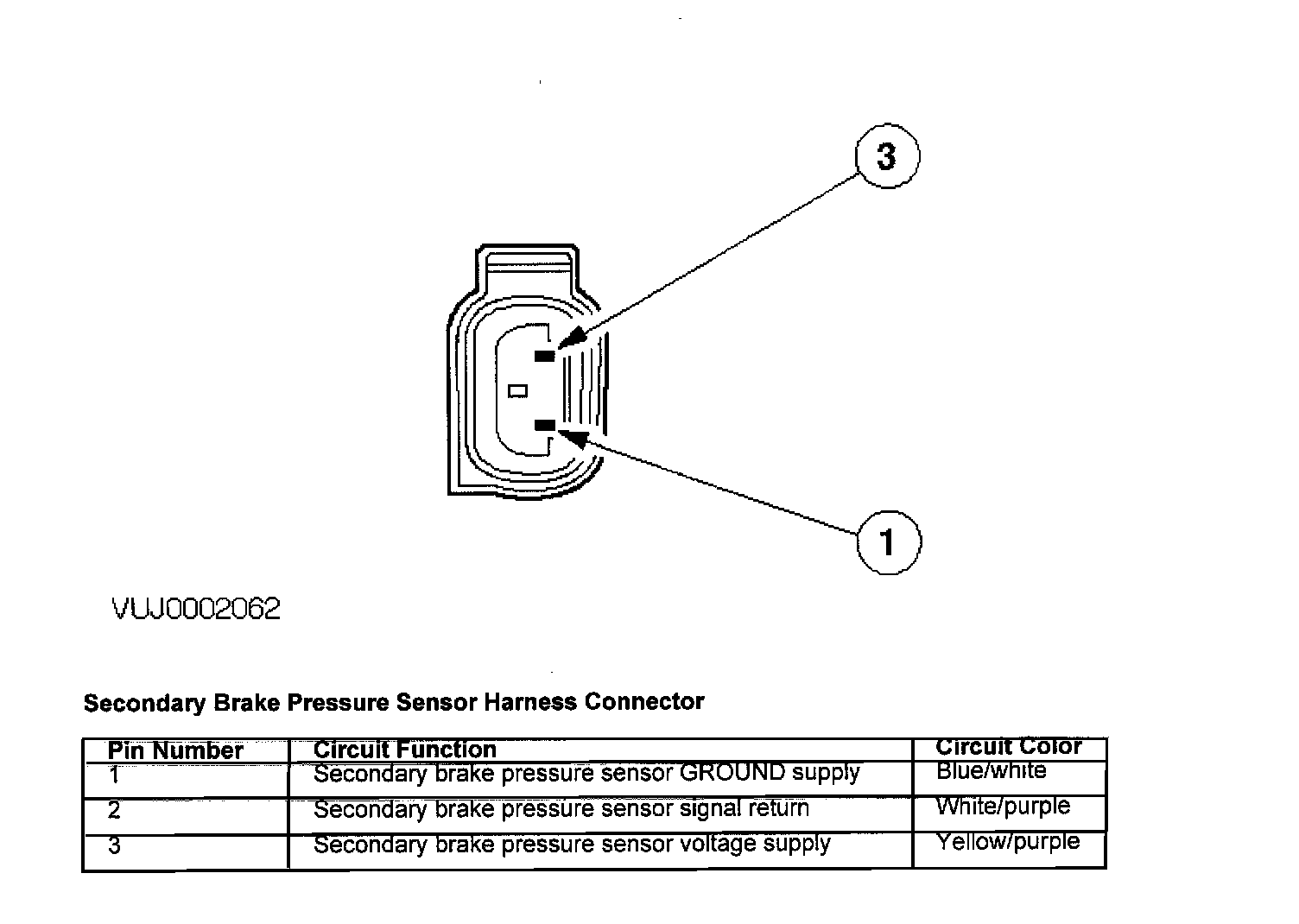 Secondary Brake Pressure Sensor Harness Connector