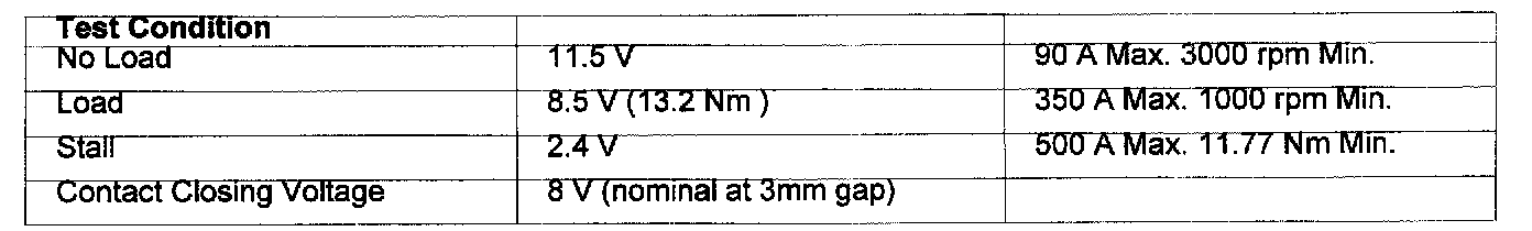 Starter Motor Bench Test Data