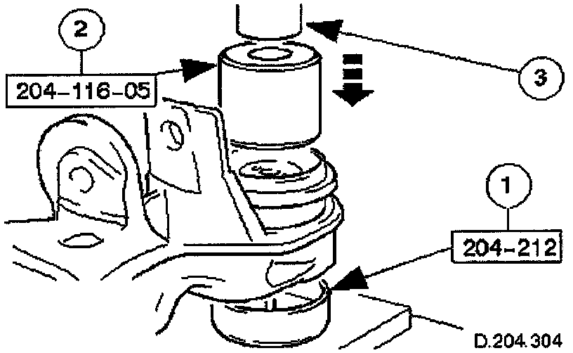 2. Using a hydraulic press, remove front mounting bush from the crossbeam.