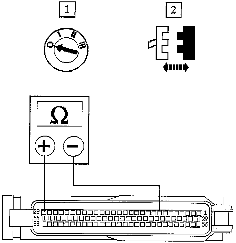 3. With EM007 disconnected, measure the resistance between EM007/028 and EM007/008.