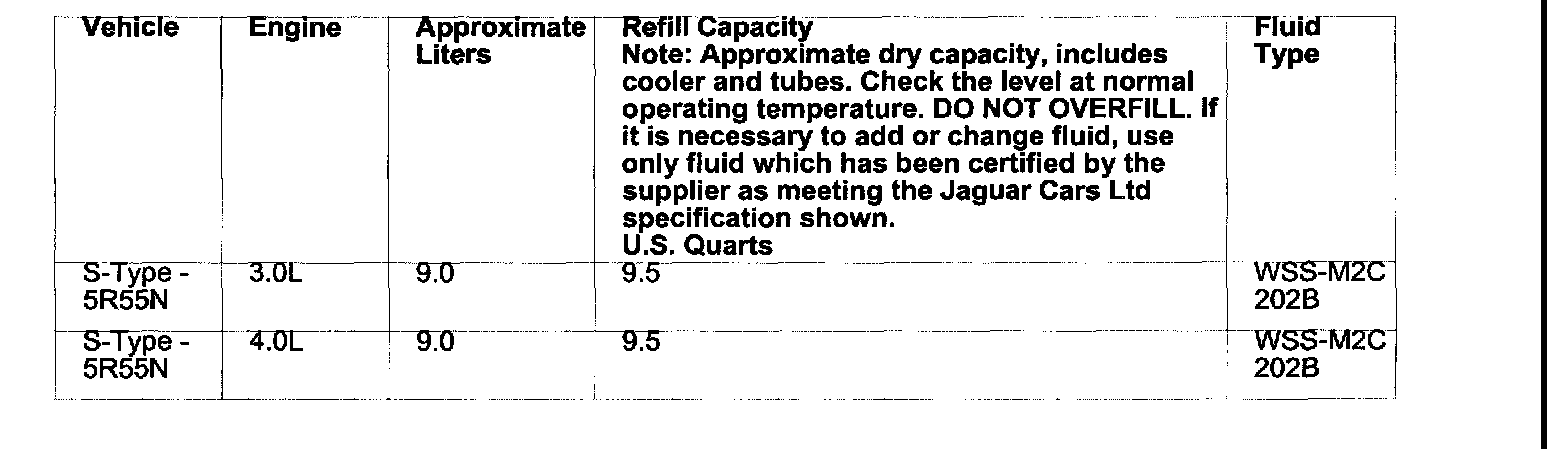 CAUTION: Use only WSS-M2C 202B Automatic transmission fluid. Use of any other fluids may result in a transmission malfunction or failure.