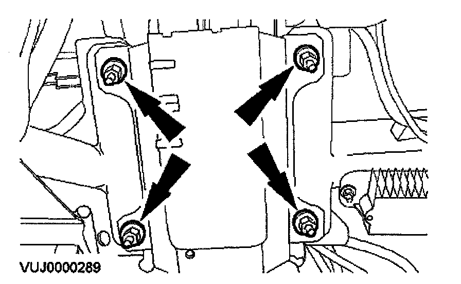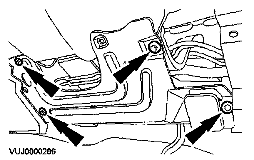 5. Remove the hood latch release handle supporting plate securing screws.