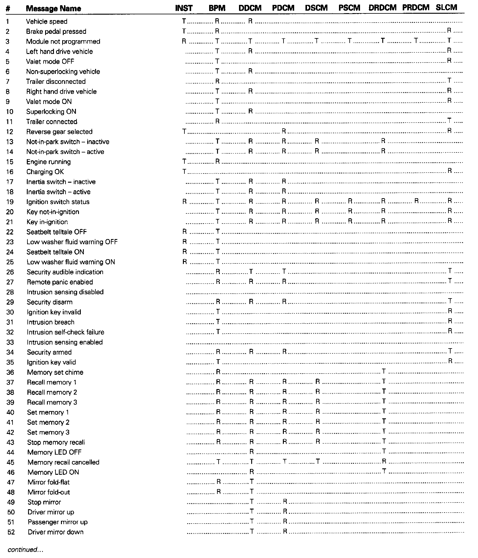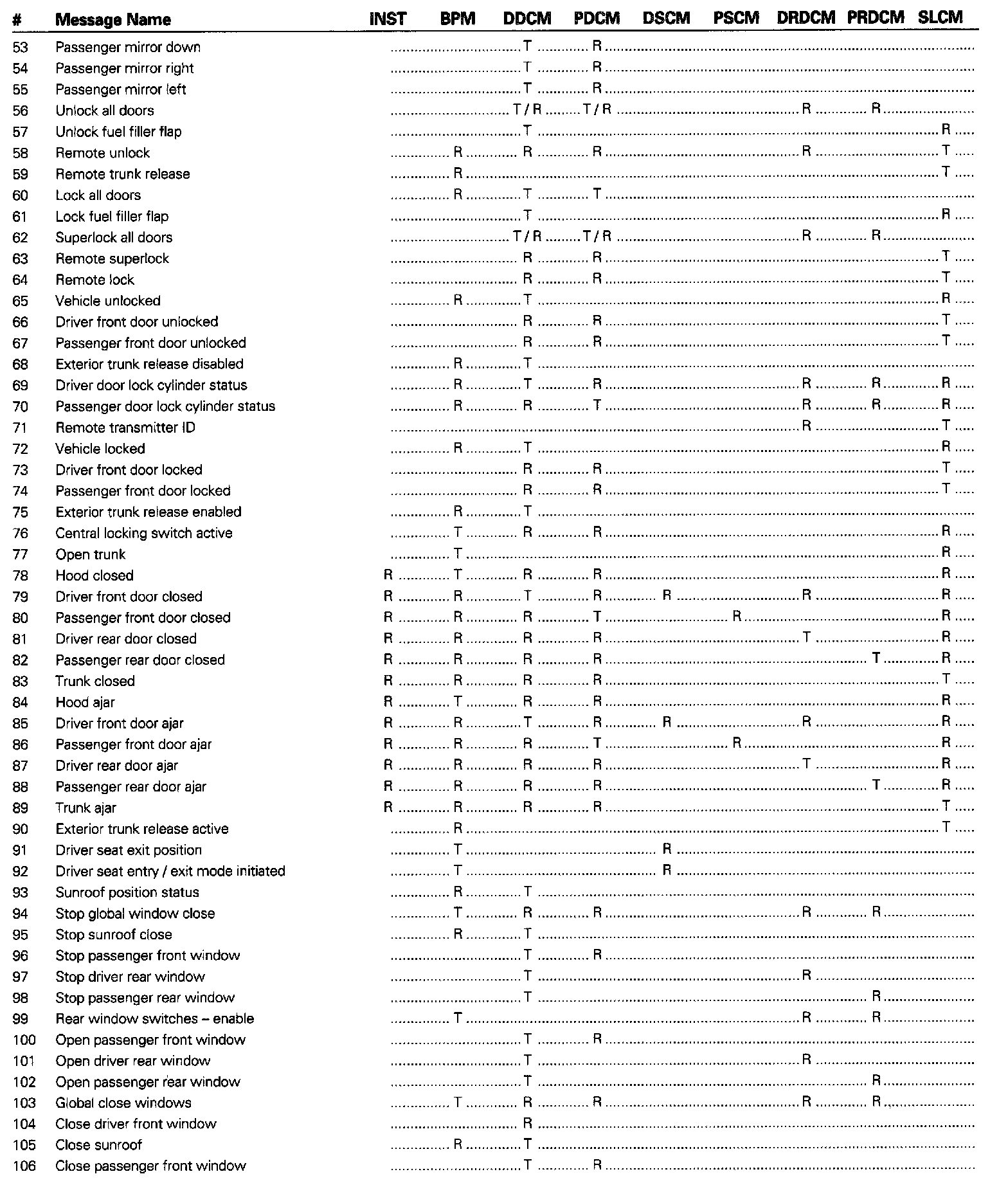 SCP Message Matrix