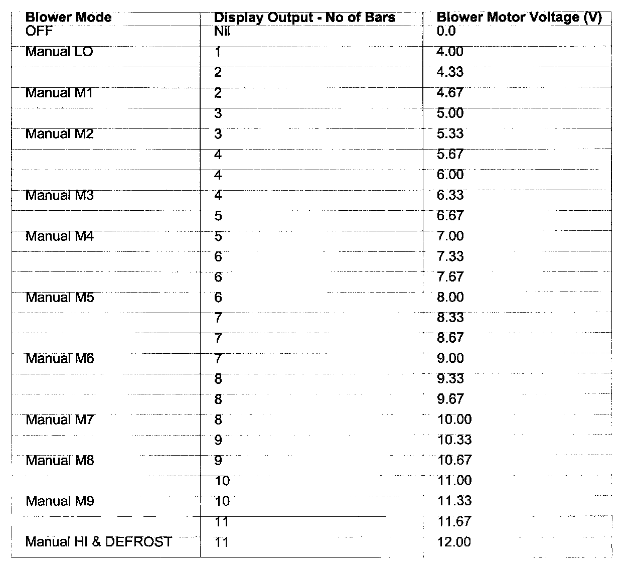 NOTE: Blower motors are inhibited when the engine coolant temperature is below 35 °C and heating is demanded, unless DEFROST is selected.