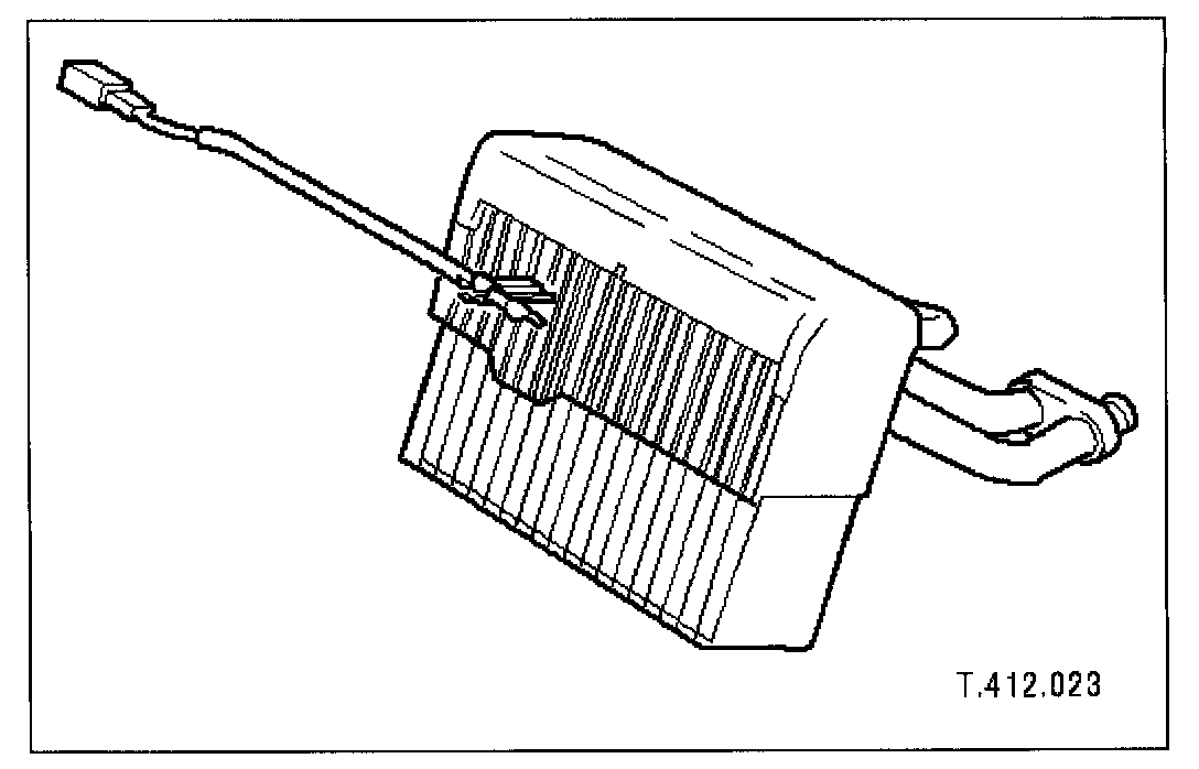 The sensor is positioned next to the evaporator fins and measures air temperature after it has passed through the evaporator. The sensor inputs a signal to the A/CCM which controls the compressor (see table) when the refrigeration system is operating.
