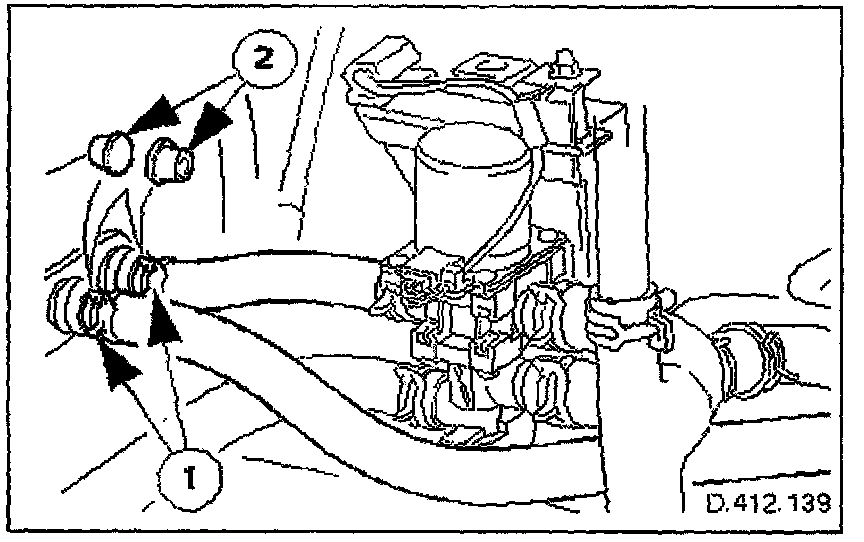 1. Release spring band clips and disconnect heater hoses.