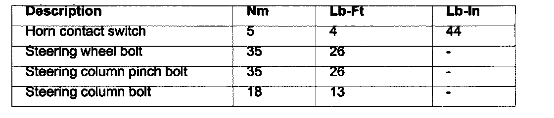 Torque Specifications, Steering Column
