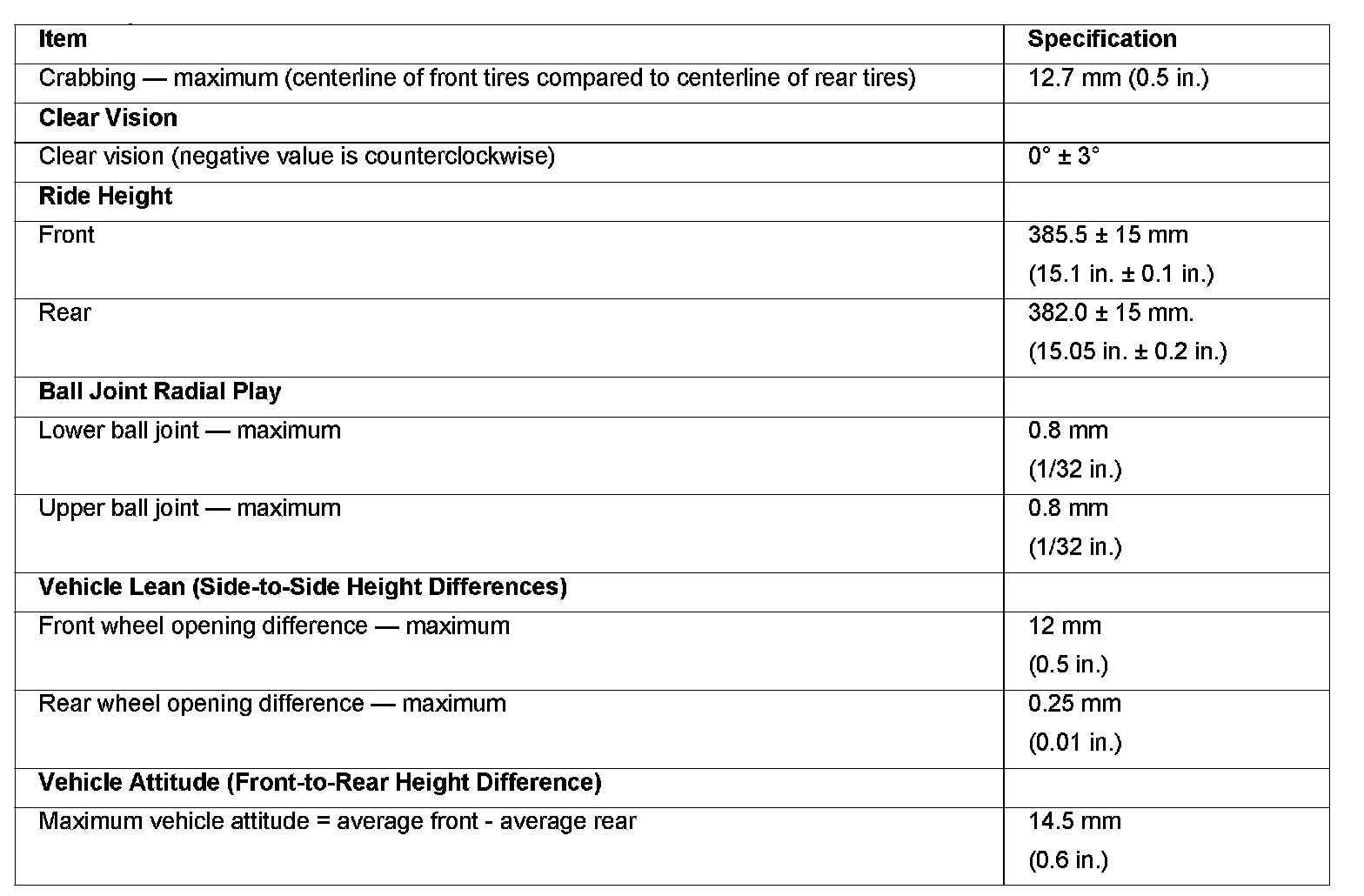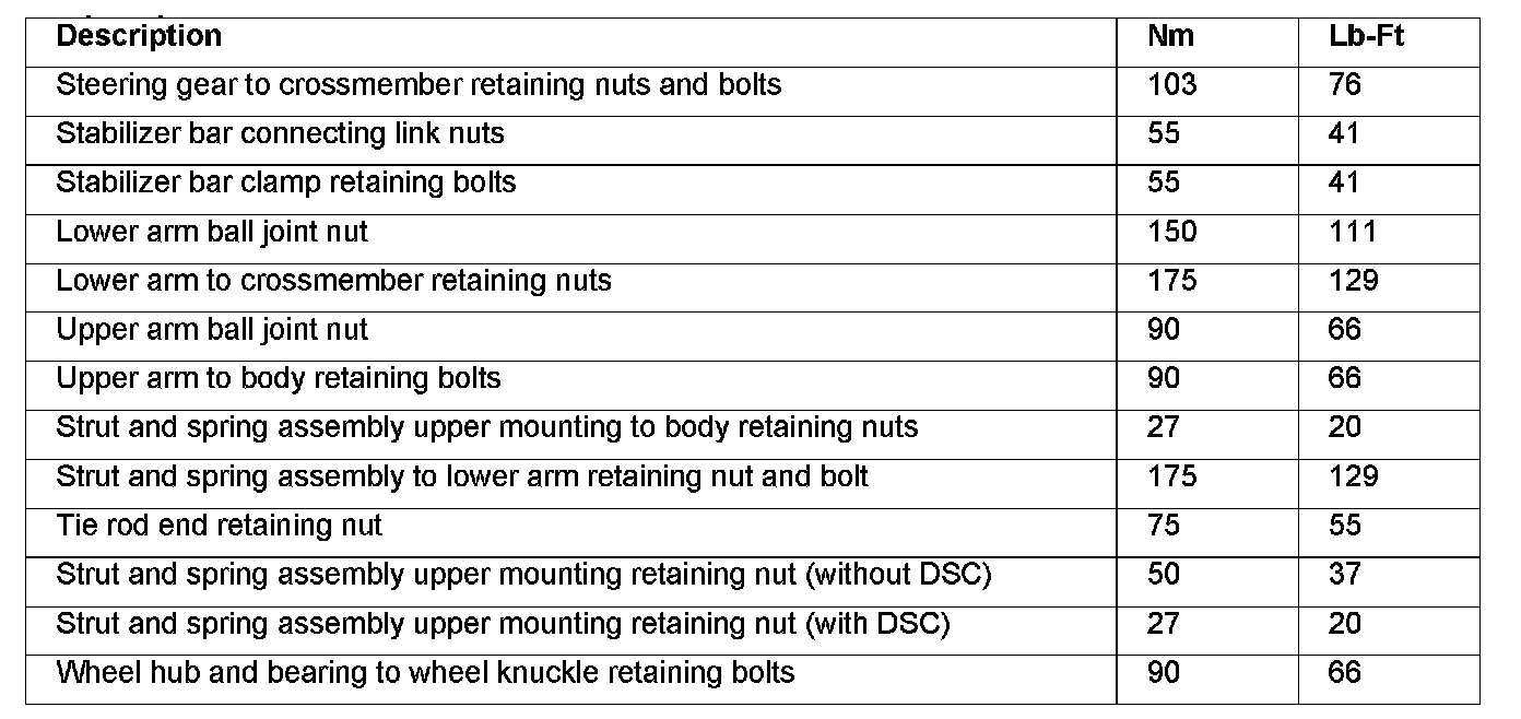 Torque Specifications, Front Suspension