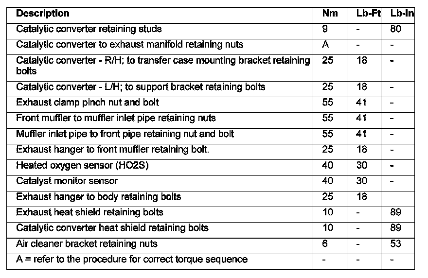 Torque Specification (Exhaust System):