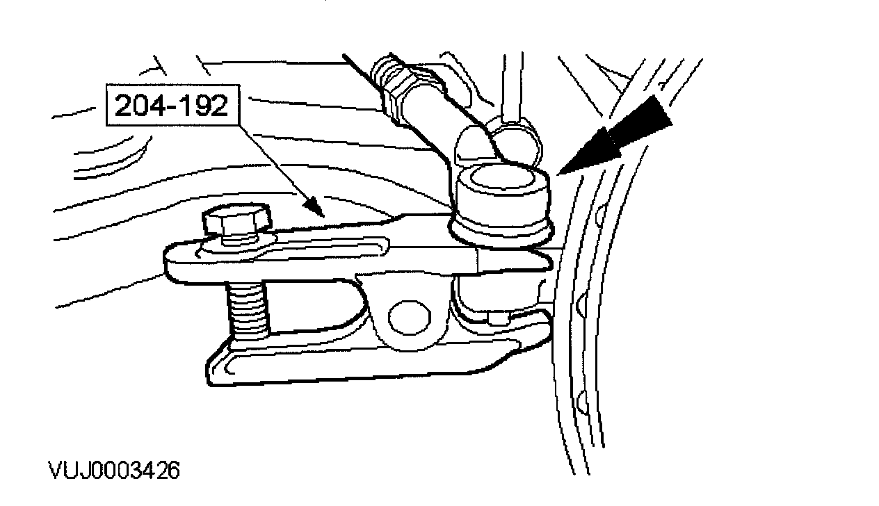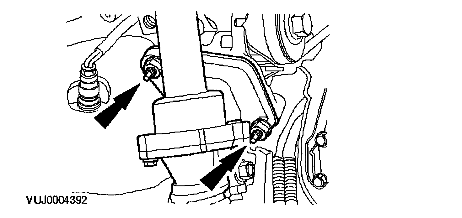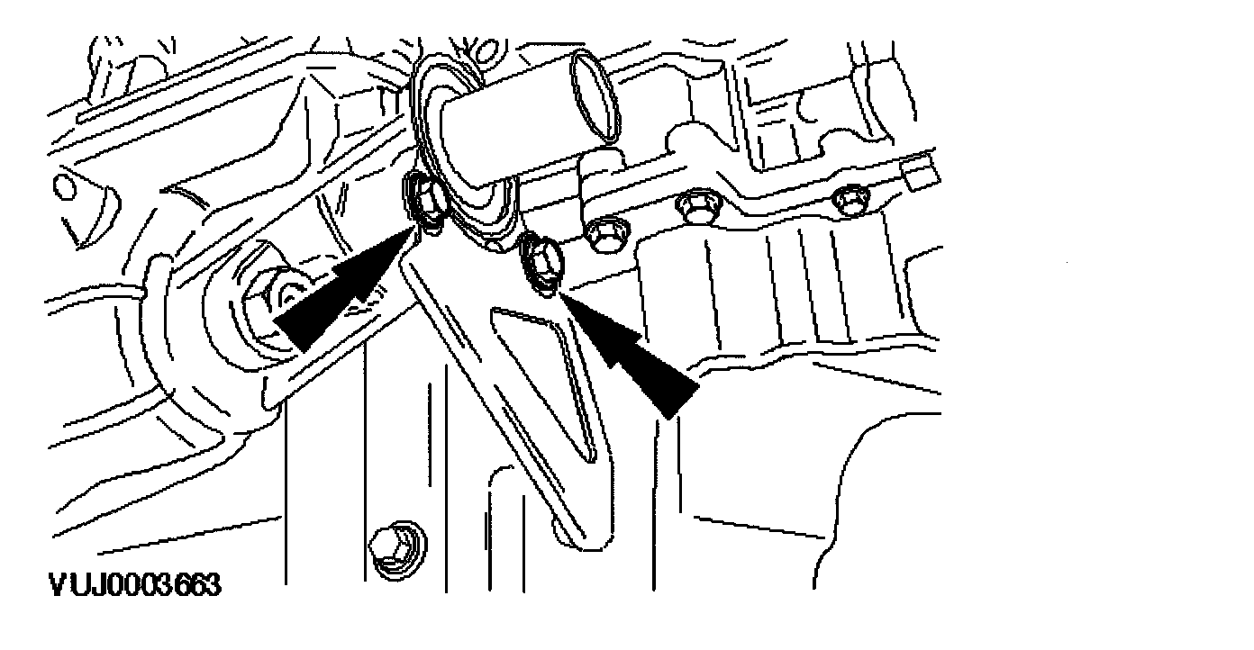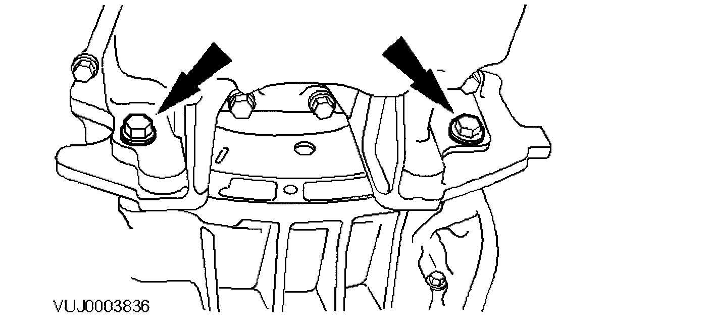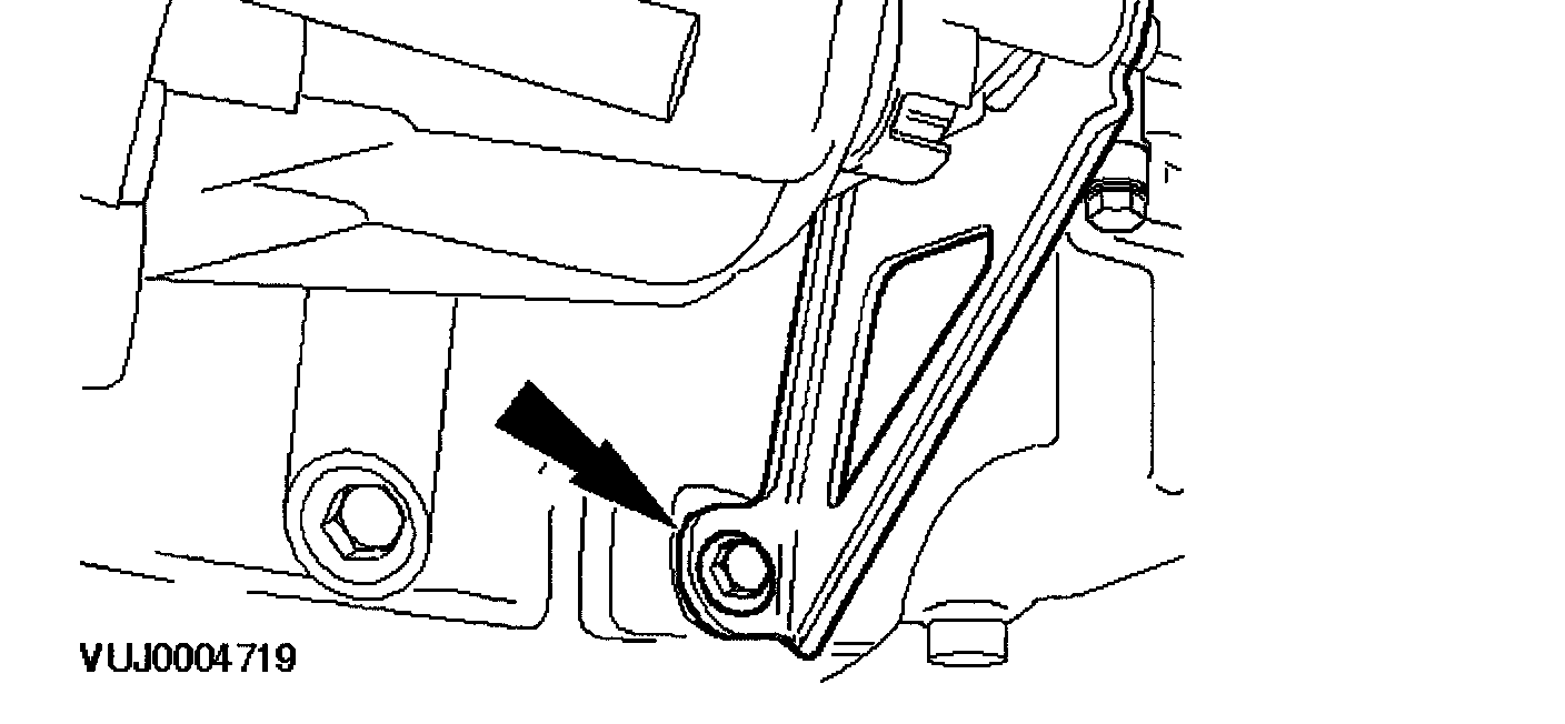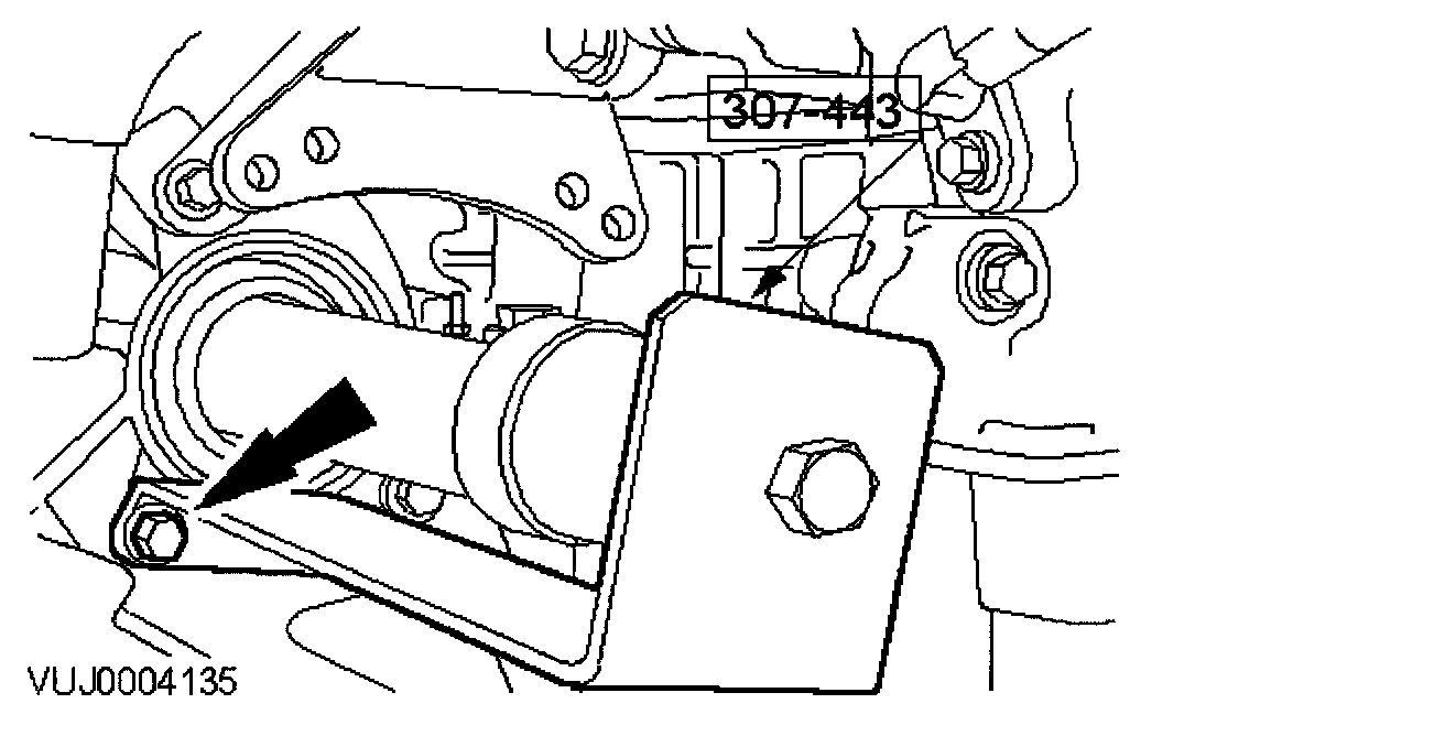 13. Remove the engine roll restrictor mounting bracket retaining bolt.