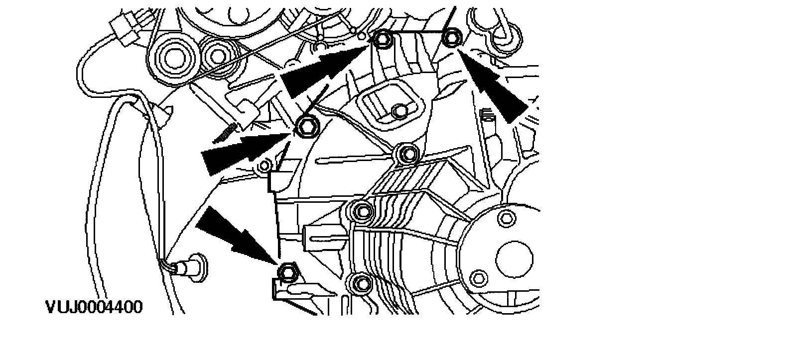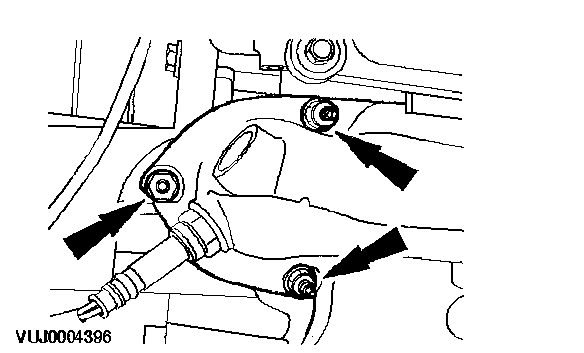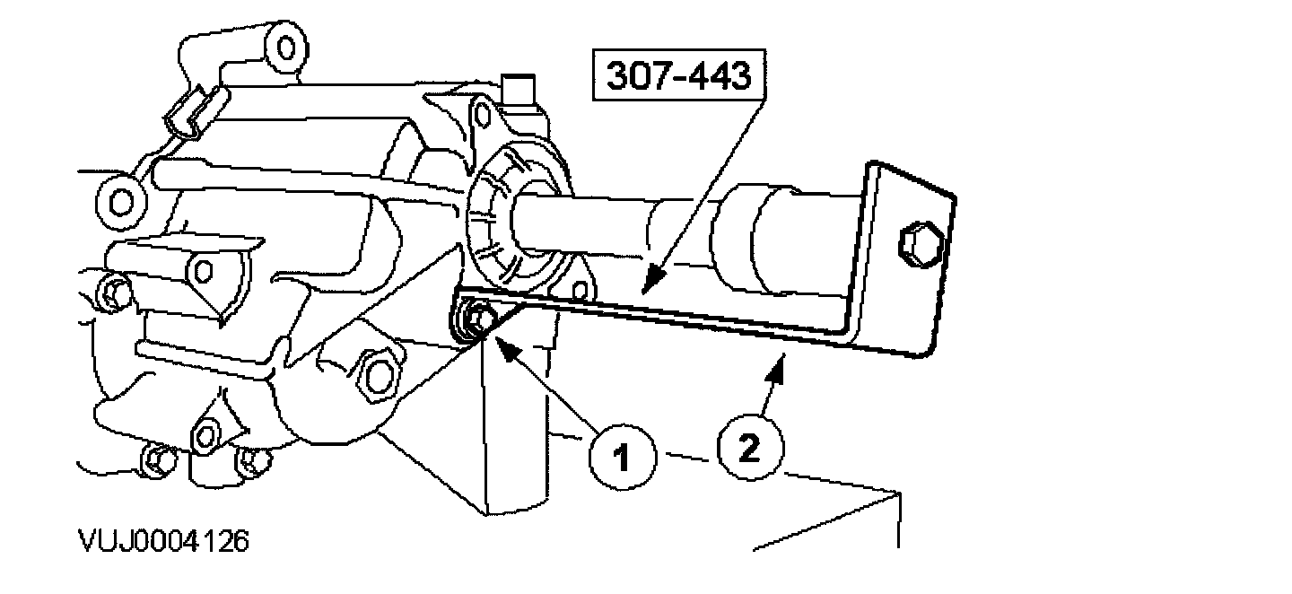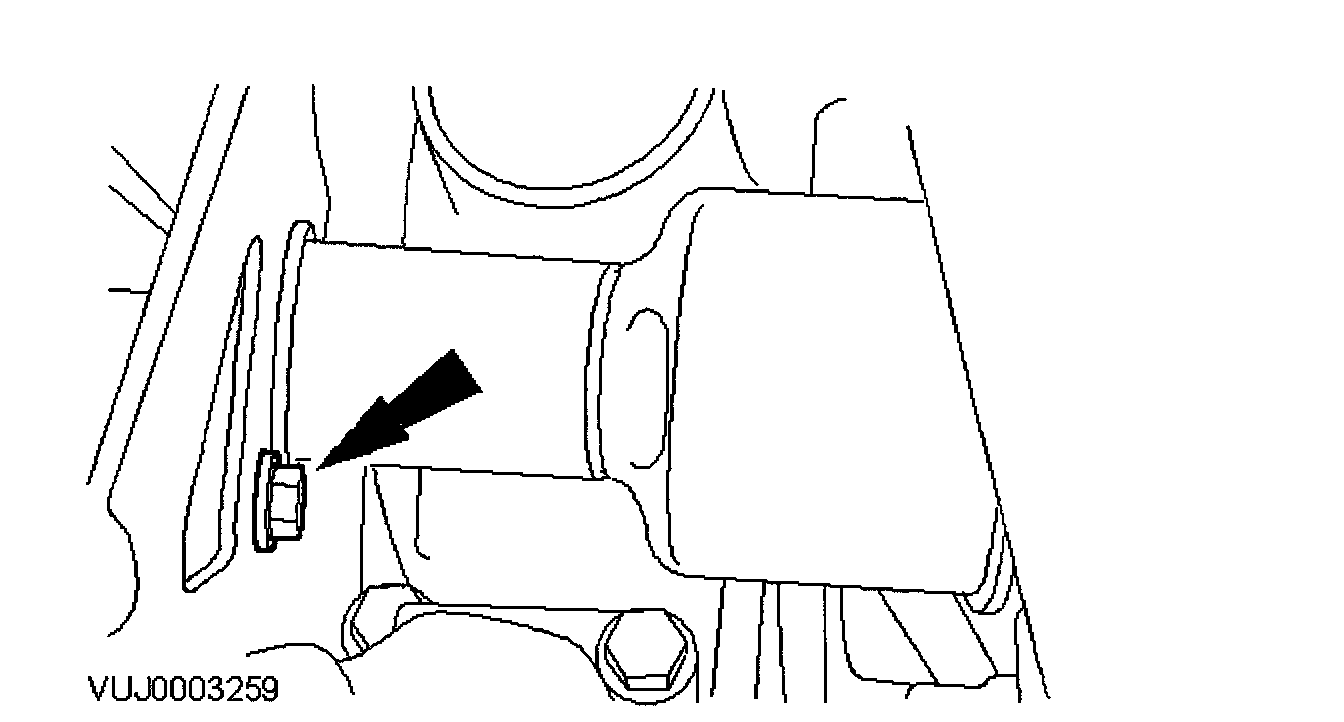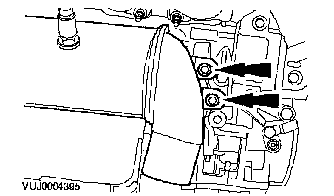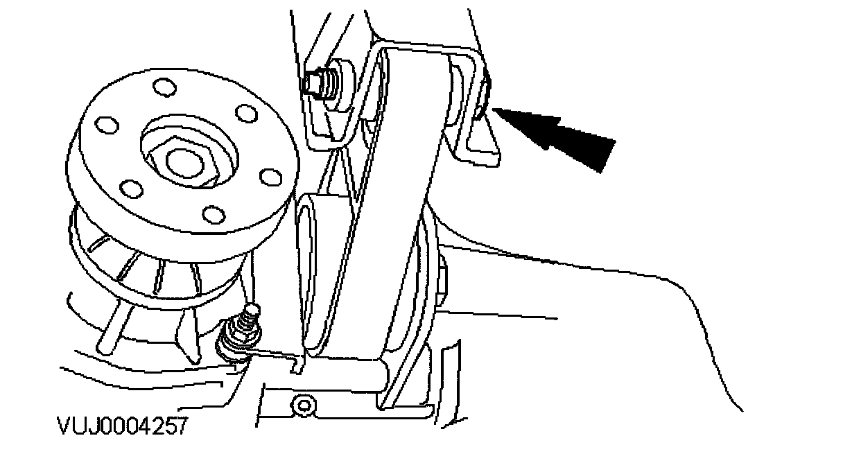 13. Remove the engine roll restrictor mounting bracket retaining bolt.
