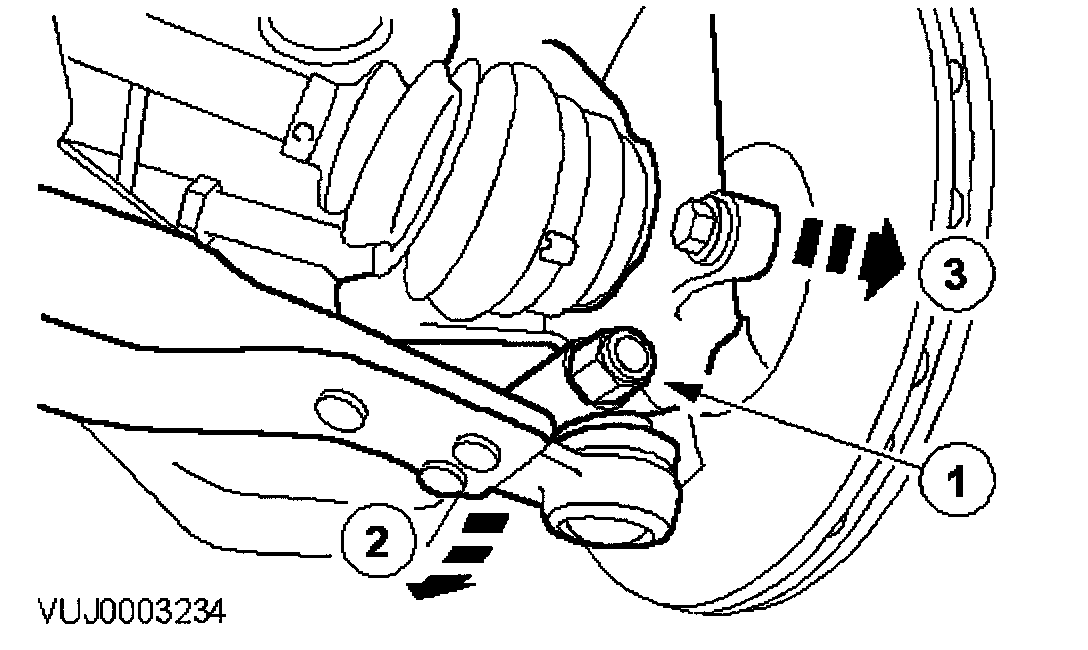 1. Remove the lower arm ball joint retaining bolt.