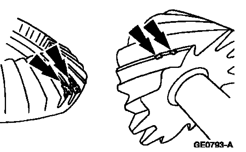 Howling or whining of the ring gear and drive pinion are due to an incorrect gear pattern, gear damage or incorrect bearing preload.