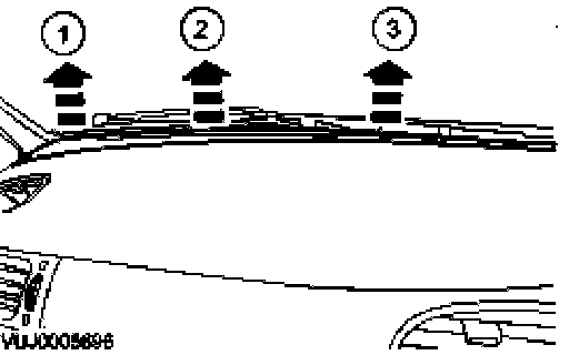 2. Detach the instrument panel defroster vent trim panel retaining clips in the order shown.