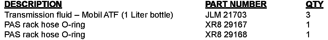 On a customer complaint basis only, drain, refill (with fluid specified in Parts Information below) and bleed the PAS system following the workshop procedure outlined below.