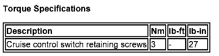 Cruise Control Switch: Specifications